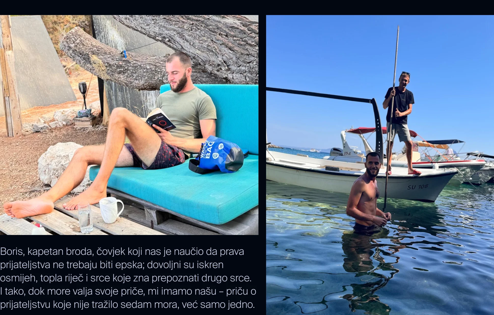 Boris Ašanin, kapetan broda, čovjek koji nas je naučio da prava prijateljstva ne trebaju biti epska; dovoljni su iskren osmijeh, topla riječ i srce koje zna prepoznati drugo srce. I tako, dok more valja svoje priče, mi imamo našu – priču o prijateljstvu koje nije tražilo sedam mora, već samo jedno.